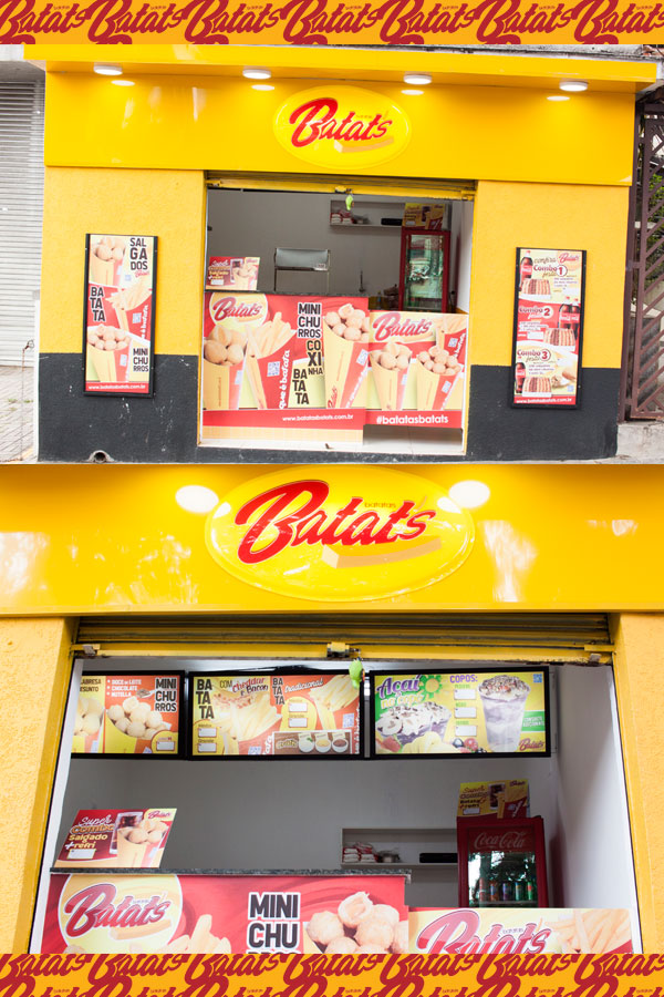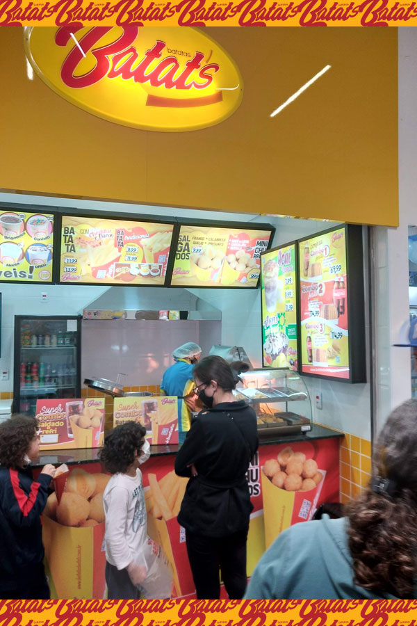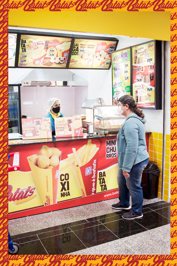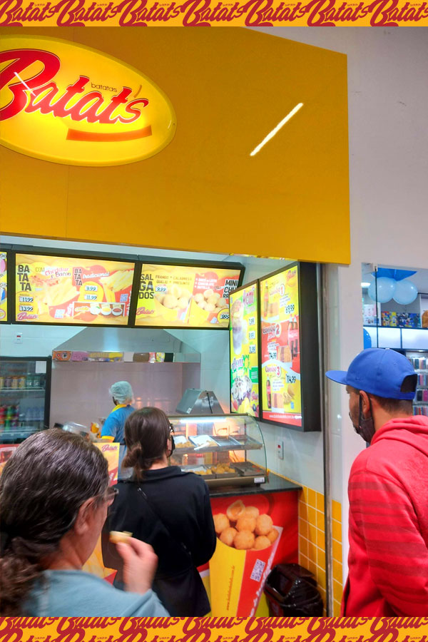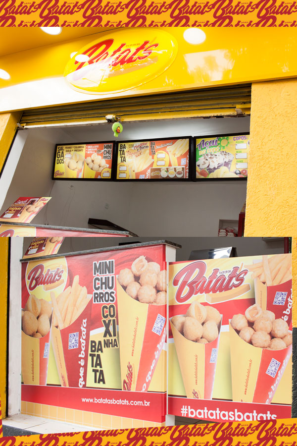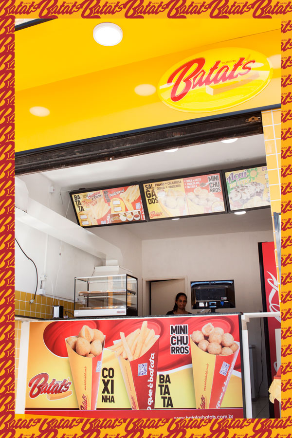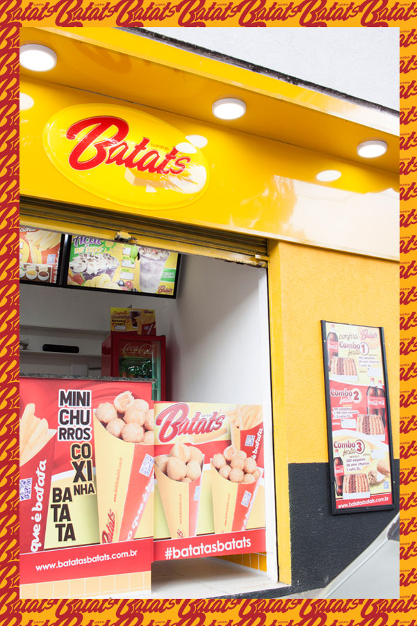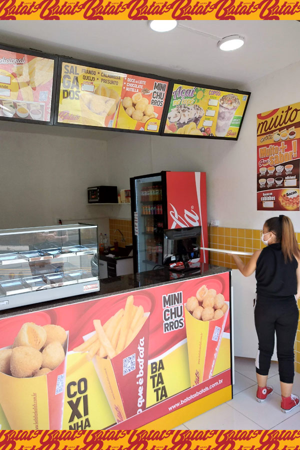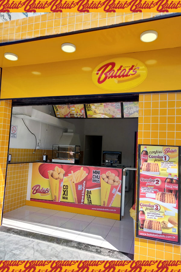 A sua Loja, Quiosque ou Mini Quiosque Batatas Batat's vende: Batata Frita no Cone (tradicional com molhos e especial com cheddar e bacon) • Mini Salgados (20g) de frango, presunto e queijo, calabresa, e queijo no Cone (cones M com 12 unidades de salgados) • Mini Churros (20g) de Doce de Leite, Chocolate, e Nutella no Cone (cones M com 12 unidades de Mini Churros) e • Bebidas (refrigerantes e sucos). Além dos Kits Festa e Combos de Salgados para Delivery.